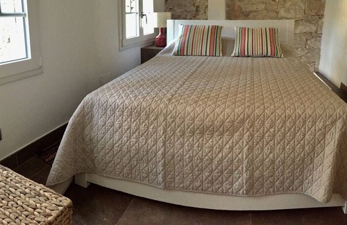 - Bedroom with a double bed offering a nice view on the garden and the pool