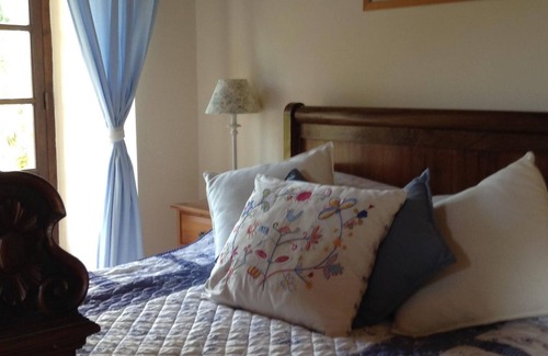 Outside the gardens are mostly laid to grass, surrounded by scented shrubs. Covered terraces offer shelter from the sun and provide ideal spots for breakfast and dinner. A terracotta path leads from the house to the pool area where you can relax on a sun-lounger or do your lengths.