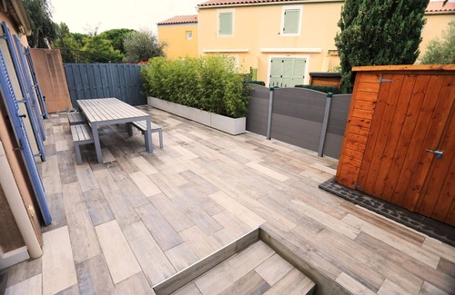 The large terrace (54m2) is very pleasant to eat outside, to rest on a deckchair, to play with the children etc ...