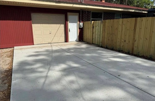 The apartment entrance is located in the front of the home. You will park in front of the garage door. There is a private yard just for apartment guest to the right of where you park.