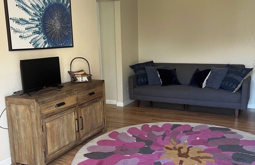 Your Napa adventure begins at this brilliant studio that we call “The Casita.” This cozy space offers a comfortable living room with a sofa that converts to a futon like bed for an extra guest. The bedroom is a separate space but does not have a separate door. Recently renovated bathroom is off of the bedroom. There is an “pocket kitchenette” that has a sink, cupboard,microwave, toaster oven, coffee maker and hot plate. There is a small outdoor table behind the Casita to enjoy your morning coffee. Our place will help you feel at home while you're visiting Napa.