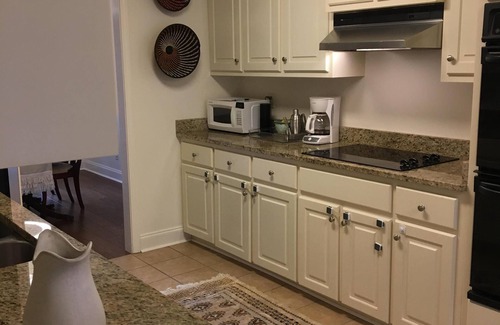 This spacious ranch style home has four bedrooms and two and a half baths with hardwood floors and granite counters throughout the house. The kitchen, outdoor patio/grill, and dining area offer everything needed for entertaining. The spacious layout of this home comfortably fits seven people and up to 12 using the two couches and extra space for blow-up mattress in the study.