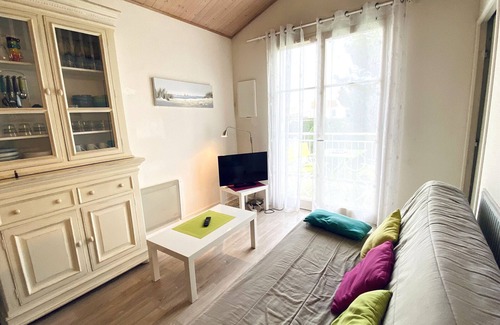 Charming T2 Mezzanine with Balcony, 700m from Beach, Well-Equipped, Calm Area is located in Les Sables d'Olonne. Charming T2 Mezzanine with Balcony, 700m from Beach, Well-Equipped, Calm Area provides accommodation, featuring TV, Balcony/Terrace, Security/Safety, among other amenities. This Apartment features TV, Balcony/Terrace, Security/Safety, to make your stay a comfortable one.