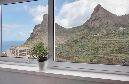 Surrounded by the mountains and overlooking the sea, travelers will find the wonderful vacation home “Casa Taganana” which was partially constructed in the 15th century. This holiday home consists of a living room, a well-equipped kitchen with a dishwasher, 2 bedrooms as well as one bathroom and can therefore accommodate 4 people. The sea view can be enjoyed from both bedrooms, even while lying in bed. The main room has a furnished balcony from which guests can enjoy the mountain and sea views. Additional amenities include Wi-Fi, cable TV, portable heaters, and a washing machine. The holiday home has a private furnished terrace (partially covered) with a barbecue, perfect to enjoy a meal outside. In order to reach this fantastic property, guests need to walk downhill or uphill, depending on where they park. The nearest beach, Playa del roque is 1.1 km from the property and can be reached in 14 minutes on foot. Further beaches like “Playa de Almáciga” and “Playa de Benijo” can be reached after 4 to 6 minutes by car. The closest restaurant is located 240 m away (4-minute walk), and several other small restaurants are also within walking distance. The nearest supermarket can be reached after a 10-minute walk (550 m), while the nearest pharmacy is located 400 m from the property. The airport of Tenerife Norte is located 35.3 km away and can be reached in 50 minutes by car.