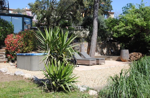 Charming and spacious renovated village house, surrounded by a large enclosed landscaped garden offering various terraces, jacuzzi and solarium.