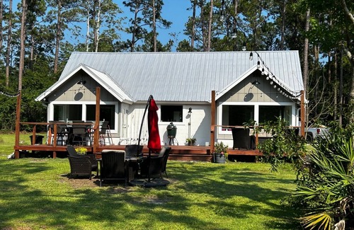 NEW RENTAL!!! ABSOLUTELY CHARMING WATERFONT HOME ON 8 ACRES WITH A BOAT DOCK. This Home is Located in Elberta, AL on Sandy Creek off of Wolf Bay. The location is AMAZING!!!!! Just a short 15 minute drive to Orange Beach and Gulf Shores, 3 miles to OWA Theme Park and Tropical Falls Waterpark. Minutes to Resteraunts and Outlet Mall shopping. Enjoy evertything the surronding area has to offer and/or relax and enjoy the beauty and peacefullness this property offers. Get ready to make some memories with your family and friends. Our goal is to make this your Favortie place to be!
