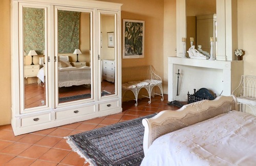 The Chateau sleeps 11 in great comfort. All rooms are large and furnished with French antiques and art work. There is a lot of space and fantastic views surrounded by a clipped hedge in 2.5 acres of private grounds. Food and drink are important aspects of the experience and there are splendid places to dine and relax all around the Chateau.