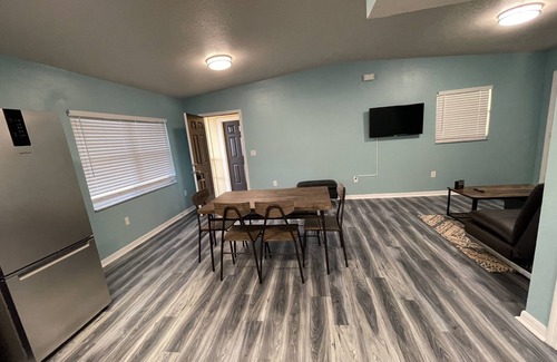 Newly renovated in 2022. This 3 Bed 1 Bath sleeps 9 guests & features upgraded luxury Vinyl Plank flooring & new furniture. Brand New Bedroom furniture featuring very comfortable Memory Foam mattresses. The kitchen is equipped with Quartz countertops, Microwave, Stove, Water Filter Pitcher, Keurig coffee machine w/ pods, Ninja Blender, cooking supplies & a refrigerator/freezer. 2 Bedrooms feature queen size beds with 12 inch memory foam & 1 bedroom features a Full over Full Bunk Beds. One bedroom & the living room each has a 43” Smart TV w/ Chromecast & free Nerflix. Dining table sits 6 guests and the living room sleeper recliner sofa sleeps 1 person.