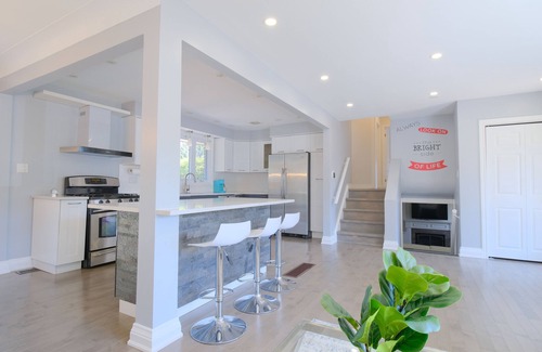 This warm and cozy house has all the comfort you can expect, located in South East Burlington on a quiet street, and just 15 mins walk to the lake and waterfront park. With beautiful décor, spacious and bright living room with open kitchen, 3 beautiful bedrooms, family room with fireplace, TV and Air Hockey Table. Warm subtle colors throughout, while providing comfort, space and practicality.