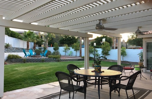 This is our personal home - recently completely remodeled with an open floor plan, high ceilings, modern kitchen, laundry, King Bed Master suite, Queen Bed Guest BR with connecting bath, and Queen Convertible Bed in the Study. Whole house Internet, Satellite TV, DVD/CD, Amazon Echo "Alexa," and wireless printer keep you entertained and connected. A new Weber gas BBQ can cook for 6 in either the formal dining room or out under the stars .