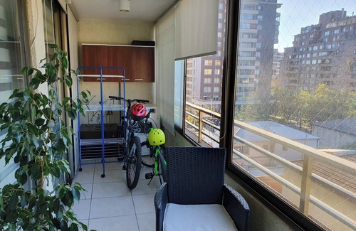 Amplio, cálido y tranquilo ambiente para disfrutar de una cómoda estadía. Con estacionamiento privado en el edificio. Apto para estadías largas, cuenta con todo lo necesario para que puedas descanzar y disfrutar de tu viaje. Ubicado a pasos de estación de metro Chile España (Línea 3) y cerca de Plaza Ñuñoa, lugar de esparcimiento y diversión donde encontrarás Pubs y Restaurantes con diferentes tipos de comida. Variado comercio, tiendas de ropa, supermercados, bancos, gimnasios, entre otros.
