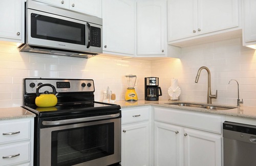 Welcome to your dream vacation retreat! This stunning 7th floor condo boasts a private terrace, perfect for soaking up the sun or enjoying starlit evenings. With two luxurious bedrooms featuring king beds, this stylish getaway sleeps up to four guests comfortably. Each of the two full bathrooms is elegantly appointed, ensuring both convenience and luxury. Step into a world of contemporary Mediterranean style with designer furniture and 300 count linens that promise a restful night's sleep. Stay cool and comfortable with central A/C while staying connected with high-speed internet. The fully equipped kitchen includes top-of-the-line appliances such as a refrigerator, microwave, oven, blender, stove, drip coffee maker, and dishwasher, making meal preparation a breeze. Enjoy Smart TVs with cable- 50" TV in the living room, 40" TV in the first bedroom, and 42" TV in the second bedroom (use your own log ins).