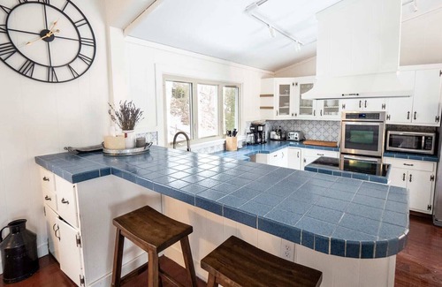 The main living room has comfortable seating, a crackling wood burning fireplace and large windows to help bring the beauty of the outside in. The family room boasts a large sectional sofa, a floor to ceiling brick fireplace retro-fitted with a warm pellet stove and a large Smart TV that you can log into your streaming apps such as Netflix, Hulu, amazon Prime, etc.