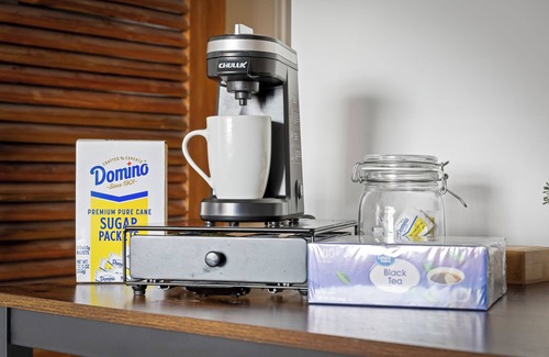 Whether you're unwinding after a day in the city or cooking a cozy dinner, this space has everything you need. The fully equipped kitchen includes a full-sized refrigerator, oven/stove, dishwasher, and Keurig coffee machine - ideal for quick breakfasts or gourmet dinners.
