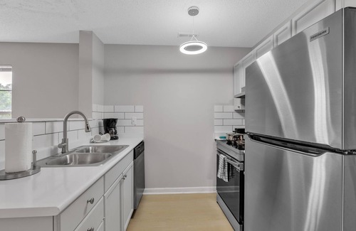 Skip hotels! Unwind in your stylish 1BR/1BA @ Carlson Bay. Spacious living area for post-adventure relaxation. Whip up meals in the fully equipped kitchen . In-unit laundry. Prime location: Fort Bragg, Cross Creek Mall, shops & eats nearby. Nature fix? Cape Fear Valley awaits! Rest easy on plush queen beds. Homey comfort, fraction of hotel cost! Book your Fayetteville escape! #CarlsonBayLuxury