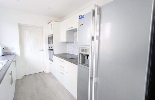 Co-Living & Kitchen: Our bright and airy communal area is the heart of the house. It features a dedicated space for home working, a fully equipped modern kitchen with brand-new appliances (oven, hob, microwave, fridge-freezer), and a stylish breakfast bar for casual dining.