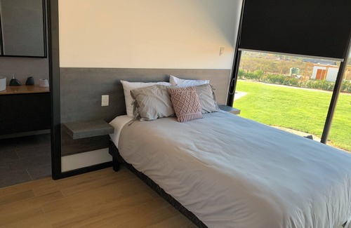 Escape to our exclusive countryside retreat in Olmué, where tranquility and relaxation await in a private and secure setting, far from the city's hustle and bustle. Our home boasts expansive windows offering panoramic views of La Campana Hill, complemented by blackout roller shades to ensure uninterrupted sleep for a serene and comfortable stay.