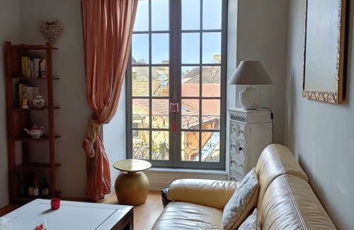 Charming apartment fully equipped in a listed 15th century building at the foot of the historic center. View over the rooftops of the city, a large living room, semi-open fitted kitchen and two large comfortable bedrooms.