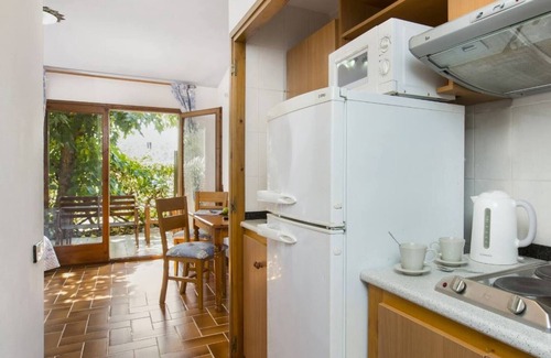 The house is distributed in a living-dining room (fireplace, Tv), fully equipped kitchen (microwave, dishwasher, gas stove, washing machine). Has 3 rooms; 2 double beds of 135x190cm and 1 double room (2 single beds of 90x190cm) and 2 bathrooms with a shower (1 of them is located in the garage). Nice outdoor area with fully fenced pool and built-in barbecue. Each of the apartments has 2 single beds of 90x190cm, a kitchenette (microwave, refrigerator, electric stove) and 1 bathroom with a bathtub. With access to a separate terrace. In addition, there is a common washing machine for all 4 apartments.