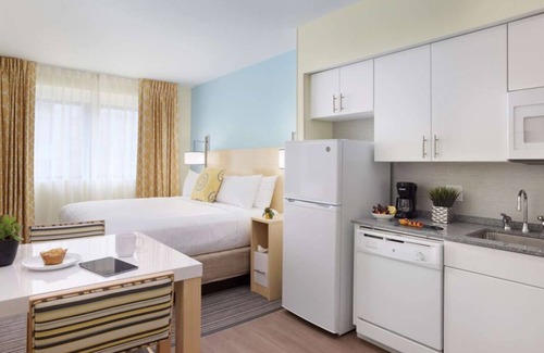 The hotel's spacious guest suites are available in king or queen bed configurations. All rooms also feature a host of modern amenities, including a flat-screen TV with cable channels and a kitchen with coffee maker, microwave, refrigerator, freezer, and stovetop. Before heading out for a full day of exploring the city, guests can take advantage of a complimentary breakfast or take sets of exercises at the fitness center to feel energized for the day. The hotel also hosts a 24-hour convenience store, business center, and laundry and dry cleaning services.