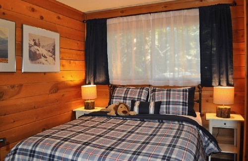Beautifully remodeled in 2016, this is a picture-perfect woodsy Tahoe cabin with rustic elegance. The location is fantastic, across the street from the National Forest and close to family friendly activities (hiking, biking, skiing, Lake Tahoe, etc). This cabin is perfect for couples, families, and furry friends (well-behaved house-trained dogs; the property is fully fenced). Every effort has been made to provide a cozy bed and breakfast like experience. The cabin has been set up with a brand new fully equipped kitchen and luxurious spa like main bathroom, entertainment center, an additional full bathroom in the master bedroom, and new beds and down comforters. Enjoy a long soak in the oversized main bathtub. There is an entry way mud room efficiently setup to store wet helmets, gloves, ski boots, and jackets. Each bedroom has an individual wall heater, which allow personalized temperature settings. There is a large flat screen TV in the family room with a DVD player, and a selection of DVD's and games. This cabin is a tranquil place to relax as a couple or family in front of the cozy fireplace or enjoy the new 6-person hot tub.