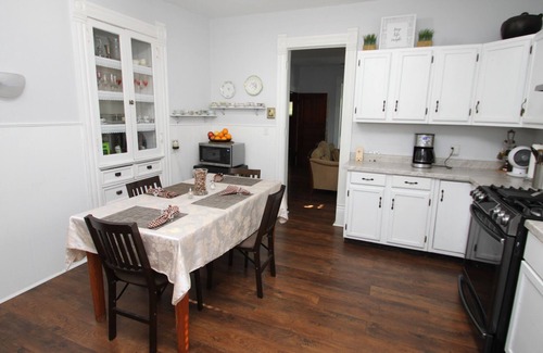 Enjoy a visit to our 122 year old house, maintained as a classic home and tastefully decorated to the times. In the main level master suite you will enjoy a large open space looking at the antique fireplace and living room.