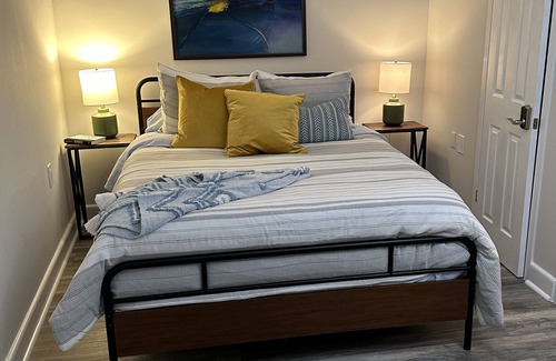Newly renovated 1 bedroom apartment is a walk to the downtown Stamford area, and 50 minute train ride into Manhattan. Queen sized bed in bedroom and sleeper sofa in the living room accommodates up to 4 people. Internet/Wifi, linens, towels, dishes, silverware and pots/pans are included.