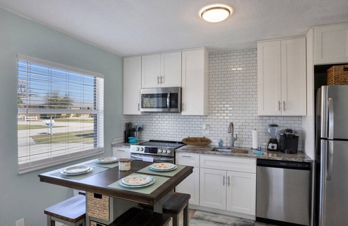 *This coastal gem is waiting for your arrival with its brand new heated swimming pool! Fresh, inviting remodeled units with new kitchen, bath, furniture and appliances. Contains three leather sleeper sofa’s with a queen-size memory foam mattresses. The rear yard is like a little oasis with new patio furniture, pavers, shell, grill and griddle. Enjoy a beverage or meal at several bars/restaurants that are within walking distance and are location is only 4 miles (7minutes) to the beautiful Englewood Beach. You will also have the opportunity to visit two other beaches (Boca Grande & Manasota) about 20 minutes North or South. Its about 2.5 hours to all the parks in Orlando. Bring your kayak! 1/4 mile direct access to Lemon Bay and the area is known as a kayakers paradise. Visit charming downtown Englewood where you can explore local shops, dine at restaurants and visit near my Indian Mound Park. Local planned events are common. This unit features a RV/Boat parking pad. Inside the fence. Message for details. There is also a county recreation center just a mile away with pickleball/basketball courts. The area is also recognized for its charming small-town atmosphere, excellent fishing opportunities, and the annual "Englewood Pioneer Days" celebration, which showcases the community's history and culture. Additionally, the Lemon Bay Playhouse and Stump Pass Beach State Park are popular attractions in the area. Enjoy the peace and tranquility that are just moments from the shoreline!