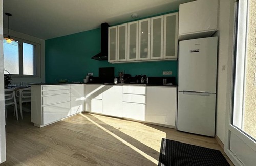 - A modern, fully equipped kitchen with direct access to the terrace and its outdoor dining space, including everything you need for meals: oven, stovetop, microwave, refrigerator, toaster, Nespresso machine, dishwasher, washing machine, and more. A welcome kitchen kit is provided for the first night only, including: garbage bag, sponge, a small bottle of dish soap, and a kitchen towel (cooking basics like salt, pepper, and oil are not provided). The large countertop makes it easy to prepare delicious meals!