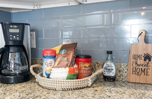 You will fall in love with this modern boho style space! As you walk in, you'll be greeted by a large open dining room/ kitchen layout with plants, art and decor to make you feel right at home! The space includes a large private patio filled with plants, seats and an outdoor dining setup. The basement is finished with a large sectional, a love seat, mood lighting and 60" LED TV. Basement also has a full bathroom and new energy efficient washer & dryer. Upstairs has three bedrooms and three full baths. One of the bedrooms doubles as an office space with large desk & a monitor. Each bedroom has a full or queen bed. (Note 2nd bedroom shows single. It is a full size bed now, pictures updated this week) The primary bedroom, on the 3rd floor, has its own private bathroom and balcony with beautiful city view.