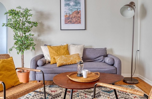 Just before you enter the living room, you'll see the full bathroom on your right, stocked with shampoo, conditioner, body wash and body lotion to make your stay as comfortable as possible. Don't forget to check out the luxury rainfall shower head!
