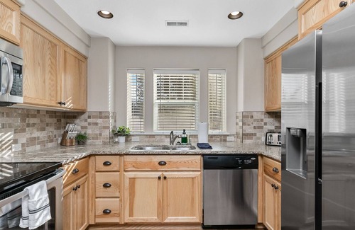 - Full kitchen stocked with essentials+ granite countertops+ stainless steel appliances