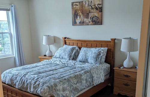 This is a fully furnished 5 bedrooms, 2 and a half bathrooms, loft, family room, sitting room, office, large kitchen island home in Manchester, PA. 1st floor master bedroom with double sinks, separate shower, separate jacuzzi tub, separate toilet and two walk closets. Sleeps 12 comfortably but there are two queen-size blow-up beds for additional guests for a total of 16. TVs with Roku device in all bedrooms. ALL utilities included!! You will always enjoy your vacation knowing that you don't ever have to worry about losing electricty...this home comes equiped with a whole-home Generac generator that comes on within 10 seconds of power outage.