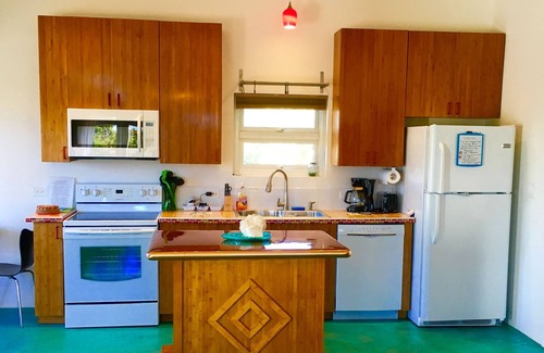Cloudbreak Is Not Only A Place Of Island Tranquility. It is well equipped and maintained. We have two kitchens, that have modern appliances, quality cookware and ample dishes. We have two sets of full size washers and dryers to help you clean up after your long day at the beach. Our AC units are Mitsubishi Slims. They are the best you can buy when it comes to mini splits and are professionally maintained. Our home is a safe sanctuary. Our hurricane/security doors and windows turn our home into a fortified castle. With all of our windows and doors you always have a view and a breeze. We have furnished Cloudbreak to be beautiful but functional as a beach house to enjoy. So bring on the sand, the fun and know you will have an awesome good time. Oh did I mention that we have really hot water. We love good plumbing. Our living areas are great for lounging and family time. The bedroom upstairs has a queen bed, french doors and is romantic. The upstairs also has a queen futon with spring mattress in the open living room. The downstairs studio is a cool retro surf theme and has queen bed and queen futon. This makes plenty of room for a family or a great place for a couple renting either the upstairs or downstairs. There is nothing better than ushering in the sunrise from our front porch with your favorite java and toasting the sunset from the back porch after a day of surfing, fishing, or exploring.