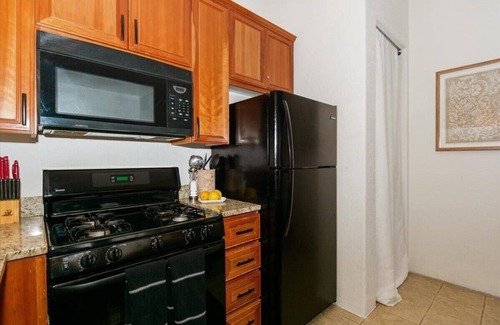 The condo is at the front of Casitas Las Rosas just a short-walk across the street to Old Town La Quinta. Home to multiple restaurants and shops for any time of the day. The community pool and hot tub are also just steps away. Pool towels and a pool key are provided for your stay. The condo is part of the Embassy Suites but it can be a great alternative to a hotel room and you're not far from the hotel lobby if you are attending an event or conference. You won't find a better location in the heart of La Quinta for a couple of nights or a couple of weeks. Nuestra casa es su casa!