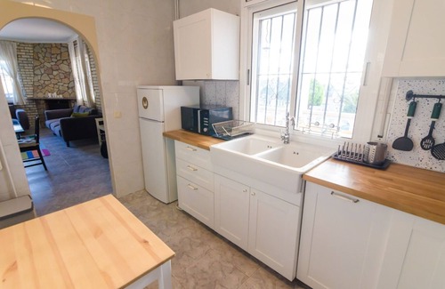 The villa is ideally located just 7,000 meters from the beach, allowing you to enjoy the best of both worlds—peaceful surroundings and easy access to the vibrant coastal life. Positioned above street level, the entrance to Papallona is on the first floor, accessible via short stairs. Once inside, you'll find a modern and well-maintained interior that exudes a light and contemporary atmosphere.Accommodation Features