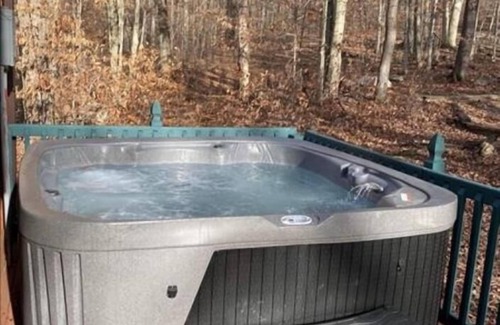 Cardinal Crest Cabin is an amazing relaxing paradise with post & beam construction, vaulted ceilings, a spiral staircase, sunken living room to give you a true comfy cabin feel. This home is also complete with amenities such as flat screen TVs, cable TV, electric fireplace, charcoal grill, full kitchen and outdoor picnic table, tree canopied fire pit area. Also has window AC units located in upstairs bedroom and in living room area. Cardinal Crest has everything you need to unwind, relax in the hot tub and enjoy your outdoorsy cabin getaway!