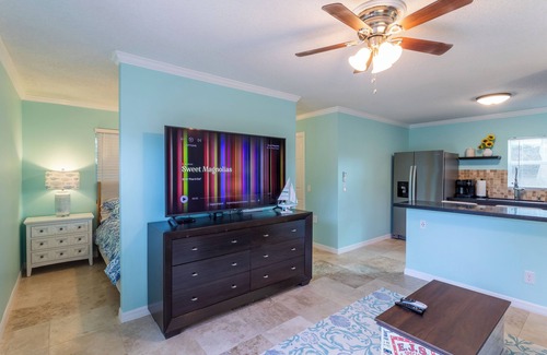 This cozy detached cottage is completely private, separated from the main house by a fence, with its own driveway, garden, and backyard. Relax in the Florida sunshine on two comfortable sun loungers, or fire up the charcoal grill for a laid-back cookout.