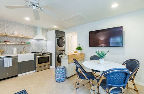 Also situated in the rear portion of the property is an adorable one bedroom guest cottage. The cottage has an open living and dining area with a brand new kitchen and new washer and dryer. There is also a 55” smart TV in the cottage. The bedroom is very peaceful and has 2 large closets for storage. The walk in shower is easy access for all.