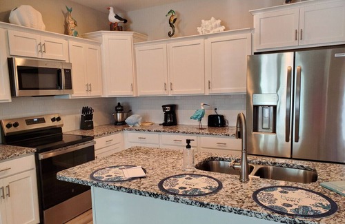 Welcome to Coastline Circle. Open & bright floor plan. Kitchen, living and dining area open out to the back yard. Screened in porch; brick patio; outdoor dining and sitting. Large master bedroom on second level with walk-in shower. Two other bedrooms with a queen size bed and a full size bed. Full size washer & dryer available.