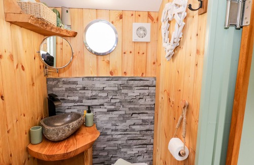 Amenities: Electric central heating. Plug-in electric hob, airfryer, fridge, kettle, toaster. Smart TV, WiFi. Fuel, power and starter pack for woodburning stove inc. in rent. Bed linen and towels inc. in rent. Off-road parking for 1 car. Enclosed patio with furniture and chiminea barbecue. Two well-behaved dogs welcome. Sorry, no smoking. Shop 0.2 miles, pub 1.2 miles. Note: There are three steps up to the entrance of the property. Note: Shower room has a compost WC. Note: This is an adult-only property