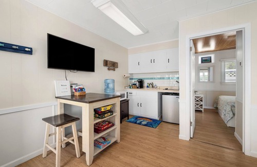 Your reservation will be for one of the waterfront cottages. All cottages are one bedroom, one bath, comfortable, coastal style suite with queen bed, queen sleeper, full bath, dining table and kitchenette (small refrigerator, cooktop and microwave). Kitchen utensils, plates, glassware, pot and pans, linens, shampoo, conditioner, soap and hairdryer provided. Keurig coffee maker with small starter kit also provided.