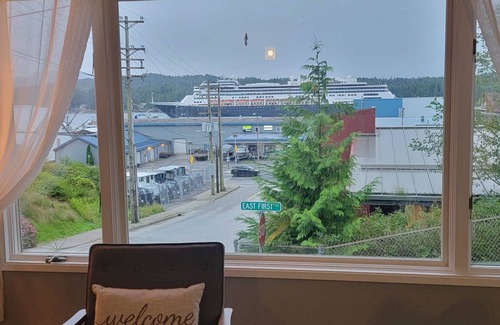Beautiful 3bd/2ba home perched on Deermount Street overlooking Tongass Narrows. Located just minutes walking distance to historic Thomas Basin Marina, the famous Creek Street and downtown shopping. Also located on the Ketchikan Walking tour route. This home is perfect for a memorable Alaskan family vacation with 3 bedrooms and 2 bathrooms hosting a bunkbed room with a full-size futon sleeper that comfortably sleeps 7. Enjoy watching the daily cruise lines depart through Tongass Narrows right from the couch! A fully equipped kitchen will be a chefs delight for making delicious meals.