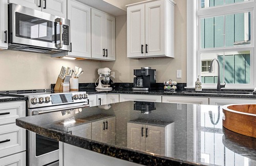 The modern kitchen is a chef's dream, featuring ample counter space and top-tier