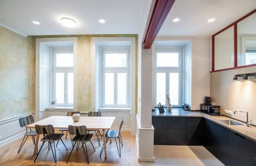 The luxury apartment has been fully renovated with industrial design in a turn of the century house. The apartment is on the second floor in a very central building, so noise may occur. Located in one of the most fashionable areas of Budapest with city's best bars, pubs, restaurants, museums, galleries, designer clothing boutiques, shops and historical architecture at your doorstep. The apartment has two bedrooms, a massive living area with fully equipped kitchen and a bathroom.