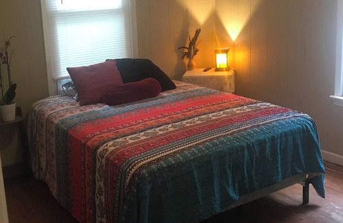 If you ever wanted to know what it feels like living on a homestead, rent your vacation home here! We have a coursing spring creek in our front yard you can hear from the screened-in porch. There are two bedrooms available for rent that sleep four people. This home is right in town and has the feel of the country because we are surrounded by trees and a luscious yard.