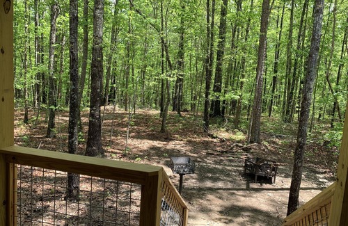 This cabin shares 20 acres in the woods with a few of our others. Each are spaced out to keep it private and relaxing! It was built in late 2022. It is completely self-sufficient, fully-furnished with all appliances.