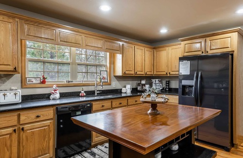 High Peak Hideaway offers all you can imagine for an amazing experience to make long-lasting memories. 3 Bedrooms 3 Full Baths, 2 King Suites, 2 bunkbeds, 1 Full, 3 Twins, for ultimate privacy each bedroom is on a different floor.