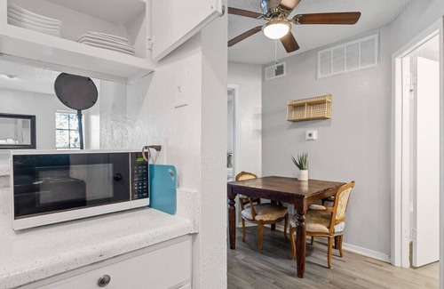 Guests have private access to the entire apartment and balcony! Make yourself at home is this urban one bedroom abode with close access to the rest of Dallas! Relax on the couch while enjoying the free WIFI and Smart TV features! Cook yourself a meal in our fully equipped kitchen, and sit on the balcony. Enjoy the free seasonal pool!