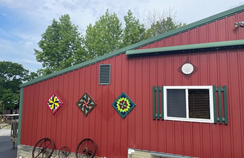 Our Red Cottage is near our hobby farm and offers a clean a comfortable place to relax. Private hot tub, huge deck with outdoor fire pit and great walking trail with a creek. It's the prefect place for a couple retreat or a small family get away. We have a swing set and jungle gym for the kids, cute goats and miniature horses, donkeys and lots of beautiful birds. If you like to take photos this is your place. We offer our guest a free dozen farm fresh eggs too. We are close to town yet in the country. A short drive to Giant City State Park, wineries and orchards. There is so much to do or you can do nothing at all.